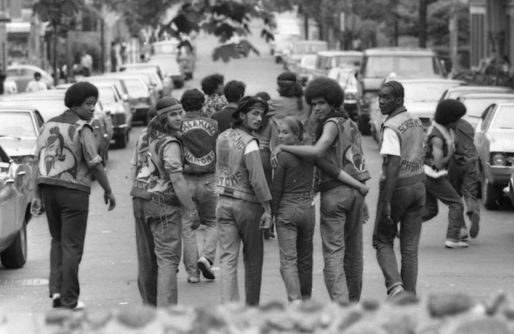 O Bronx transformou-se em um símbolo de decadência urbana e, devido a tanta violência, as gangues foram criadas com a necessidade de se protegerem. Como forma de se identificarem, utilizavam símbolos expostos nas costas de suas roupas com o nome e as cores da gangue e se dividiam por territórios; não existia a possibilidade, por exemplo, de transitar por estas áreas se estas não fossem de seu determinado grupo pertencente, correndo risco até mesmo de morte.